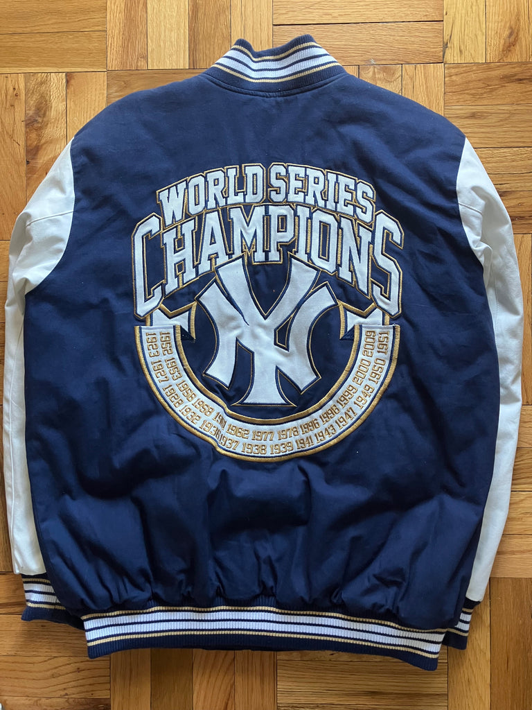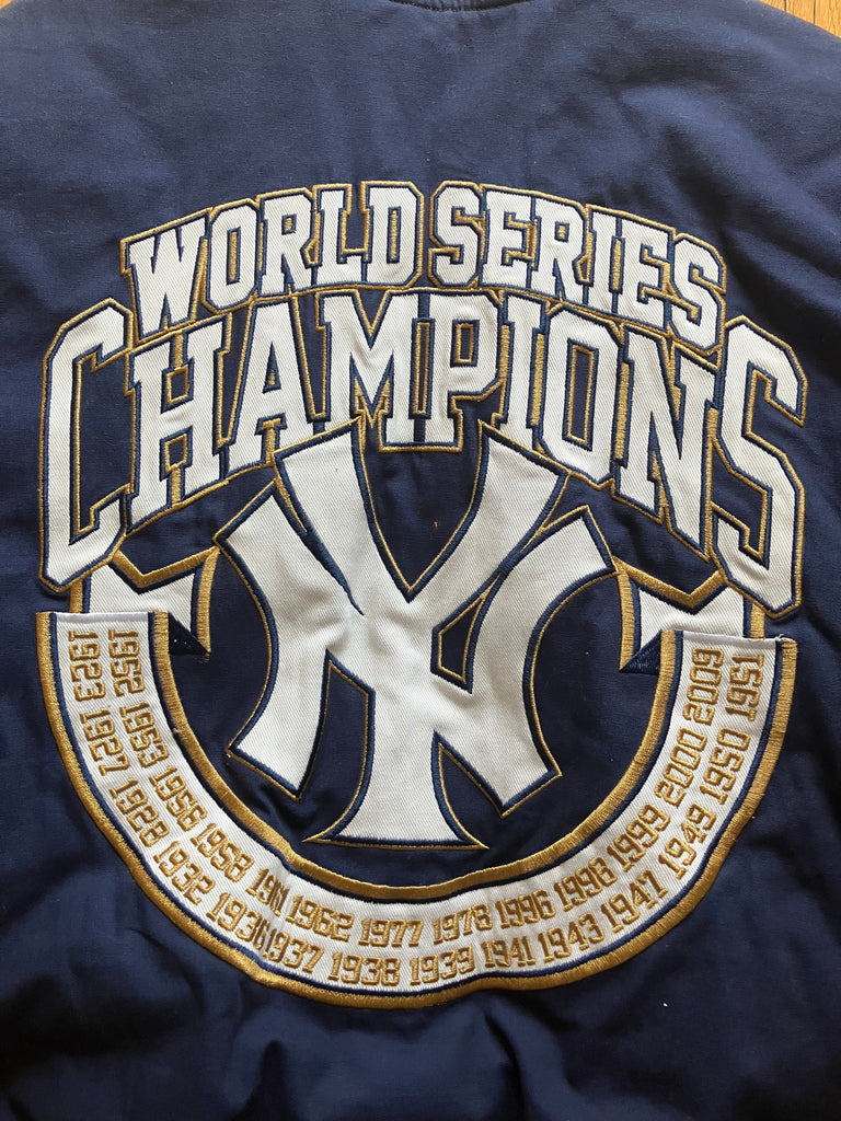 This is the perfect Yankees coat to stunt on all the other MLB teams it has all the Yankees winning World Series patches on the sleeves & all the years on the back . All embroidered. Perfect for Cold Spring days and Post Season Fall . Made by G111 designed by NY Giants legend Carl Banks . This coat is a size Large .